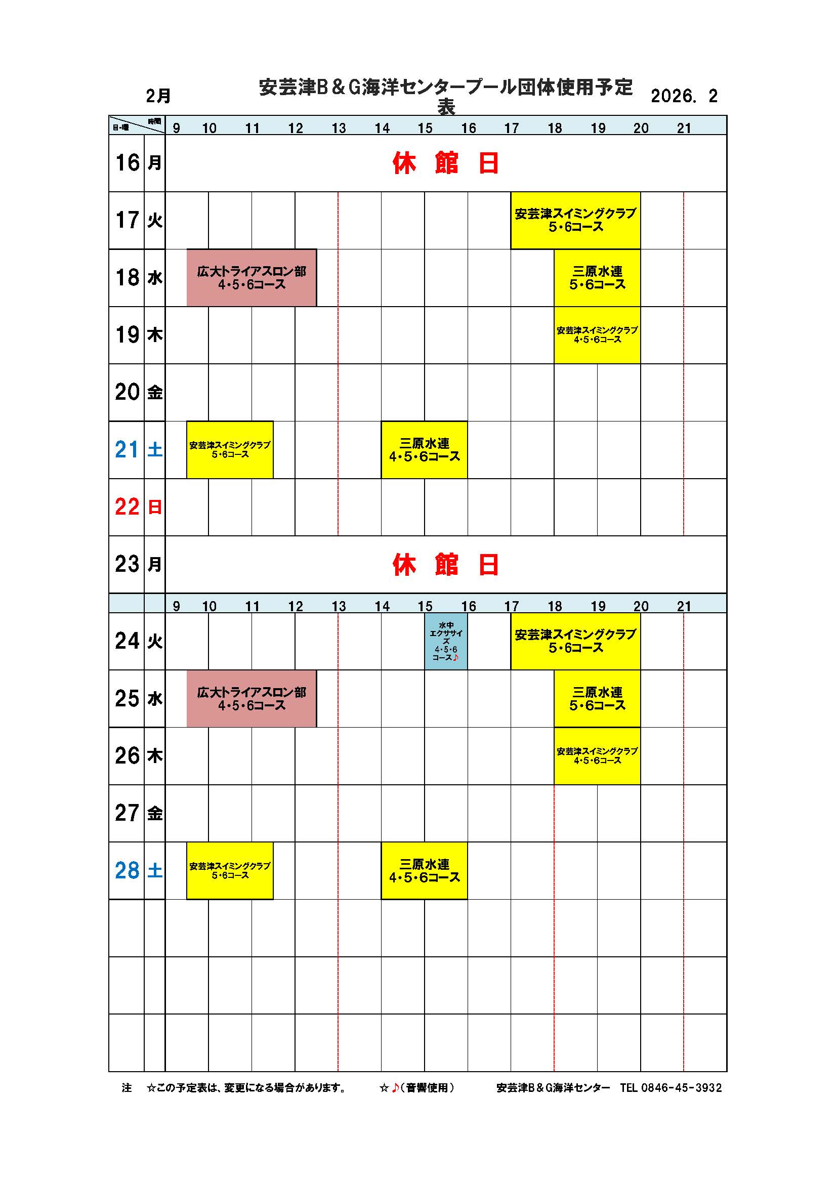 ■安芸津屋内プール団体使用予定表2月分