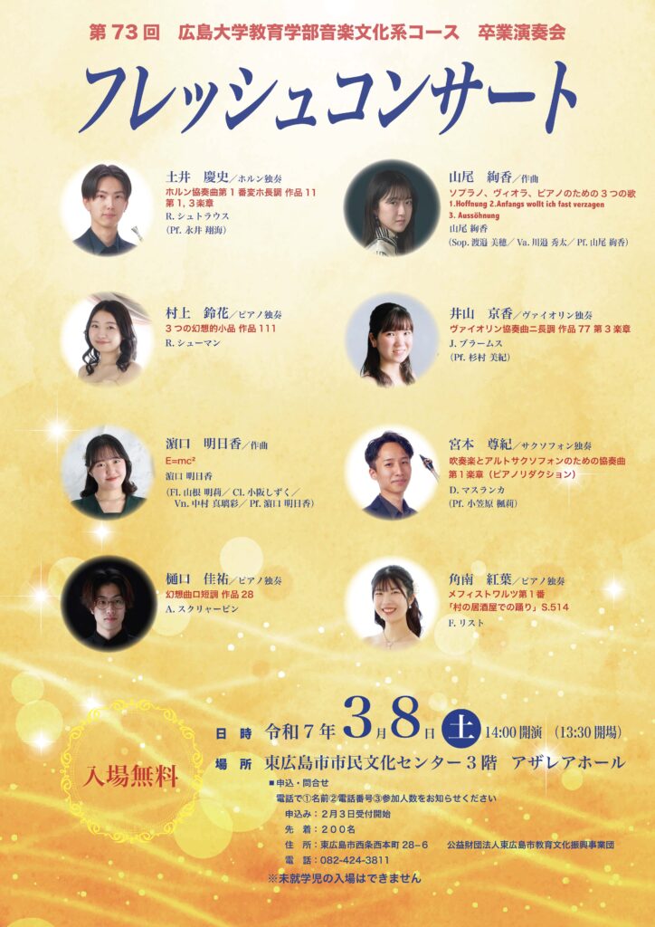 ■第73回広島大学教育学部音楽文化系コース卒業演奏会「フレッシュコンサート」