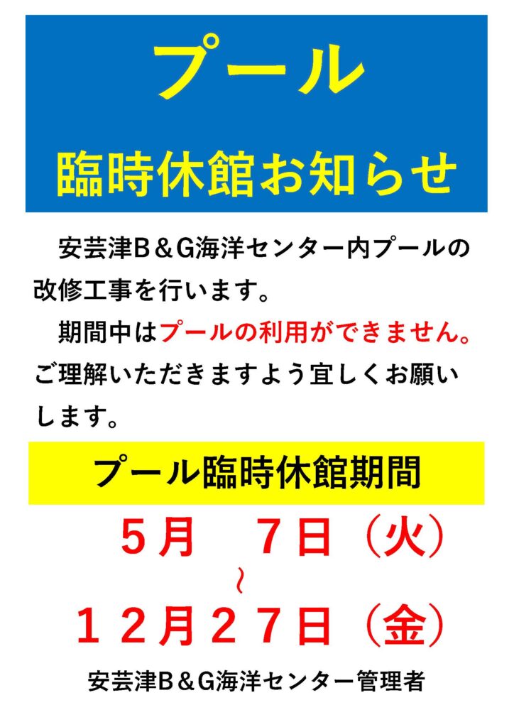 安芸津B&G海洋センタープールの臨時休館について