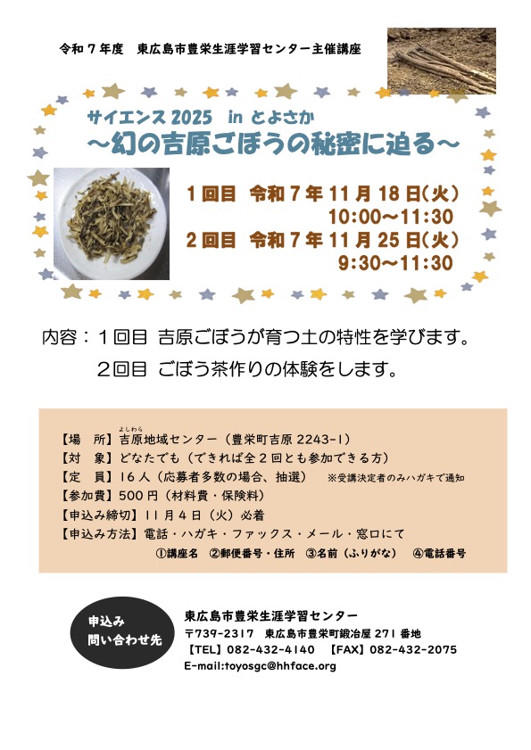 ぜひ皆さん、ごぼう茶作りを体験し、幻の吉原ごぼうを味わってください。