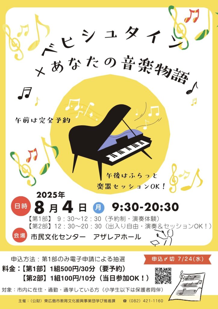 ベヒシュタイン×あなたの音楽物語 午前は完全予約/午後はふらっと楽器セッションOK