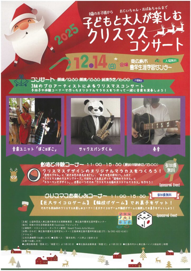 子どもと大人が楽しむクリスマスコンサート 2025年11月27日 最終更新日時 : 2025年11月27日 yoshi 地域で活躍しているグループを中心に音楽で楽しいひと時をお届けします 日時:12月14日(日) イベント11:00~15:30コンサート 開場12:30 開演13:30 場所:豊栄生涯学習センターアゼイリアホール クリスマスコンサート新ダウンロード