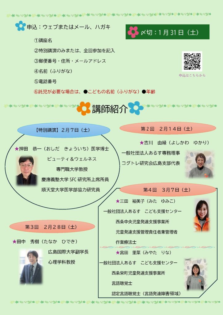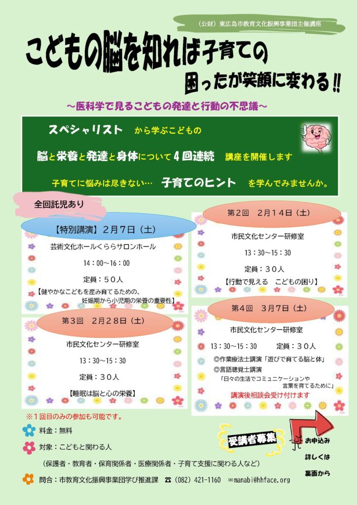 子どもの脳を知れば子育ての困ったが笑顔に変わる‼︎〜医科学で見る子どもの発達と行動の不思議〜 2026年1月8日 最終更新日時 : 2026年1月8日 yoshi スペシャリストから学ぶ子どもの脳と栄養と発達と身体について4回連続講座を開催します 詳しくはチラシをクリック‼︎