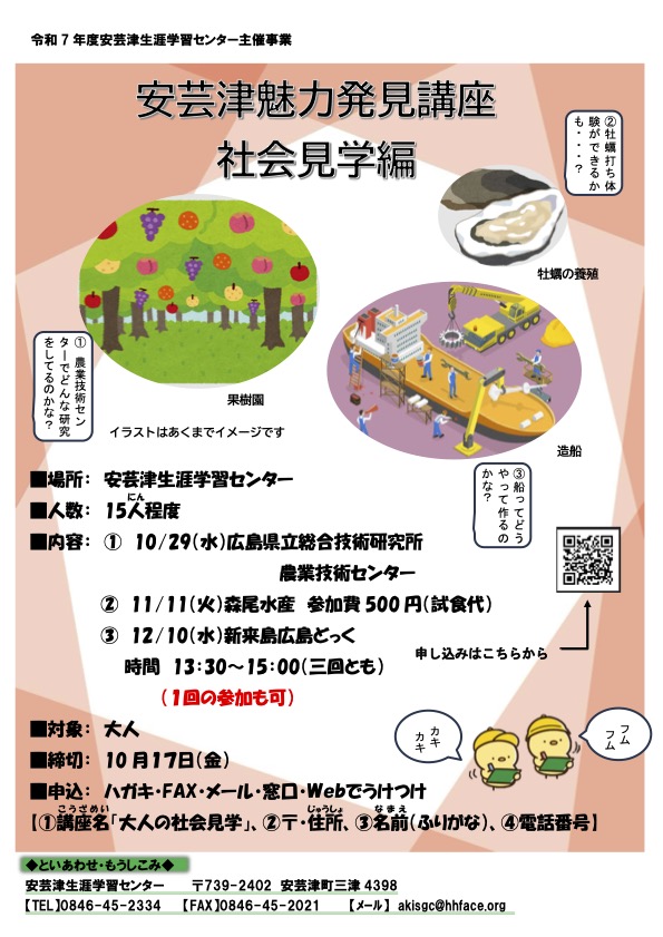 安芸津にある果樹研究所、牡蠣うち、造船所を見学します