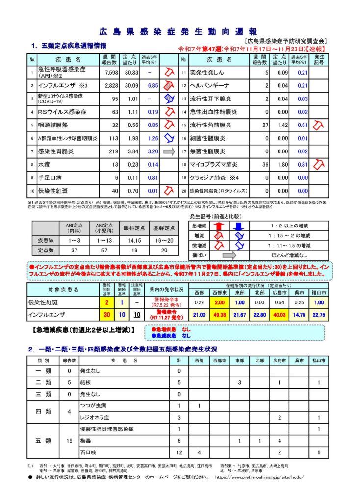 Hiroshima Prefecture Weekly Report on Outbreak Trends of Infectious Diseases, Week 47 2025