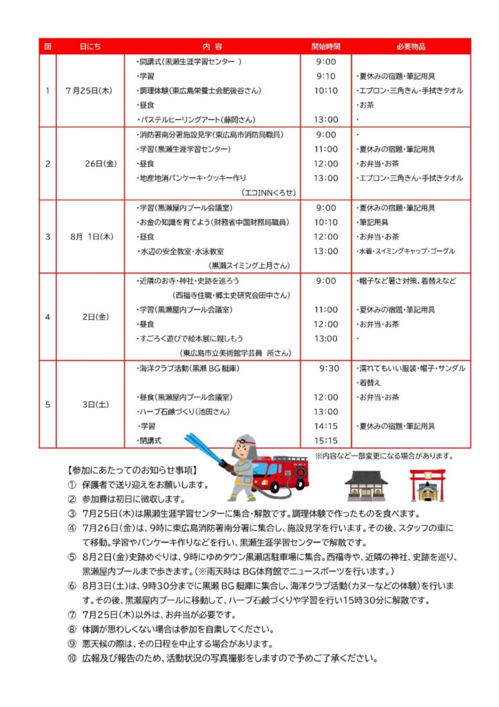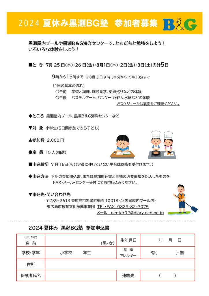 学習とさまざまな体験ができる黒瀬BG塾を夏休みに開催します。