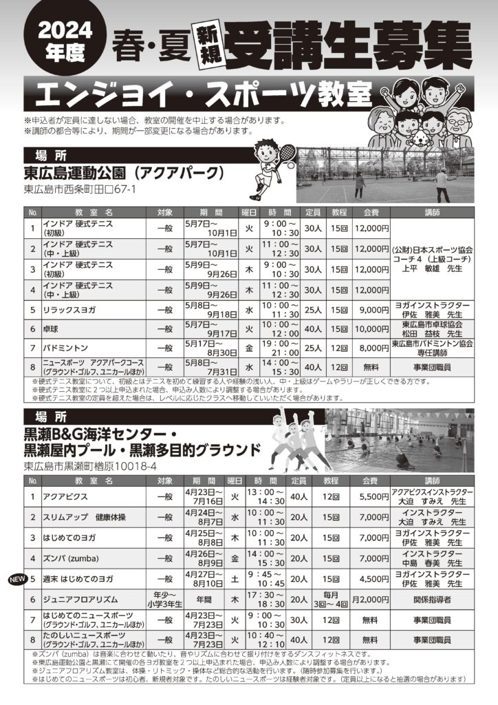4月から5月に開講する【春・夏エンジョイスポーツ教室】の受講生を募集します!