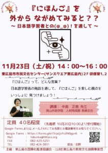 令和6年度 第3回東広島市国際交流ボランティア講習会『にほんご』を外からながめてみると??~日本語学習者との(@_@)!を通して~