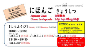 2025年後期の にほんご教室の 受付は 10月5日(日)9:00 から はじまりました。コミュニケーションコーナーが開いている9:00〜16:30 で受付しています。先着順ですからお早めに。詳しくはチラシを見てくださ […]