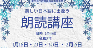 親子で、楽しくお金に関する知識や判断力について学びます。 令和8年①1月17日、②2月1日、③3月7日の全3回実施します。 実施場所:①②東広島市青少年センターセミナー室 ③市民文化センター 2階 研修室参加対象:親子( […]