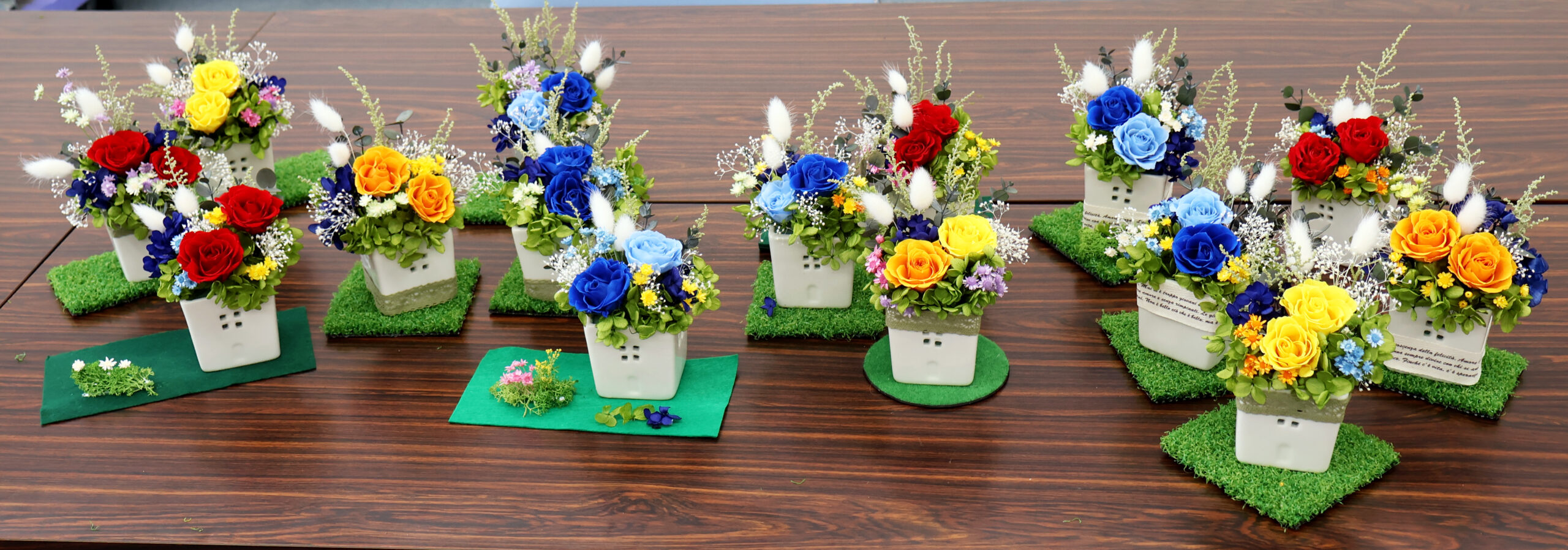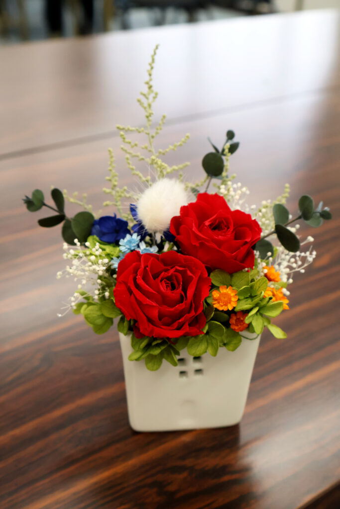 「花の生活を楽しむ」4回目 2024年7月19日 最終更新日時 : 2024年7月19日 yoshi 7月18日東広島市市民文化センター研修室で「花の生活を楽しむ」講座の4回目を行いました。今回は小さなお家の入れ物にアレンジをしていきました。芝生にもお花が咲いたりオリジナルの作品が出来上がりました。\ 最新情報をチェック /