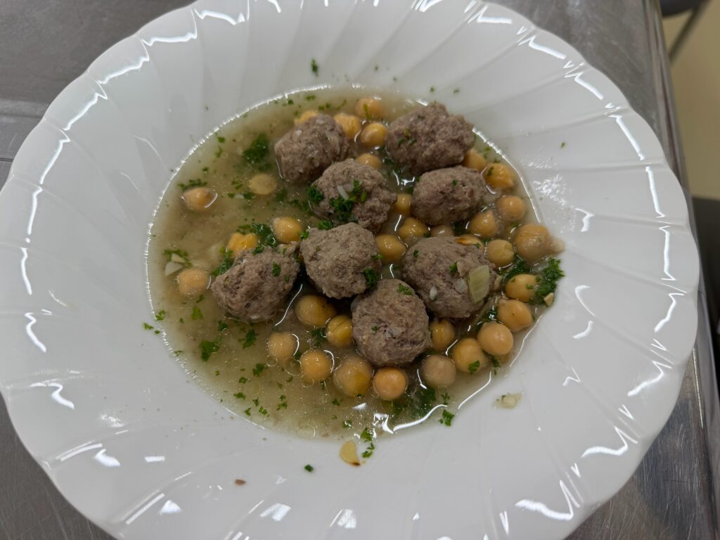 1月24日土曜日、御薗宇地域センターで東広島ミニ万博の第4回を行いました。午前からの「世界の料理コース」では、アルジェリア出身のスヒラさんを講師に迎え、伝統料理の「タジン」に挑戦。 今回は、シナモンがふんわり香る特製ソースでミートボールをじっくり煮込み、仕上げに香ばしいアーモンドとパセリを添えた本格的な一品を仕上げました。最後はみんなでパンと一緒に、アルジェリアの家庭の味を楽しみました。