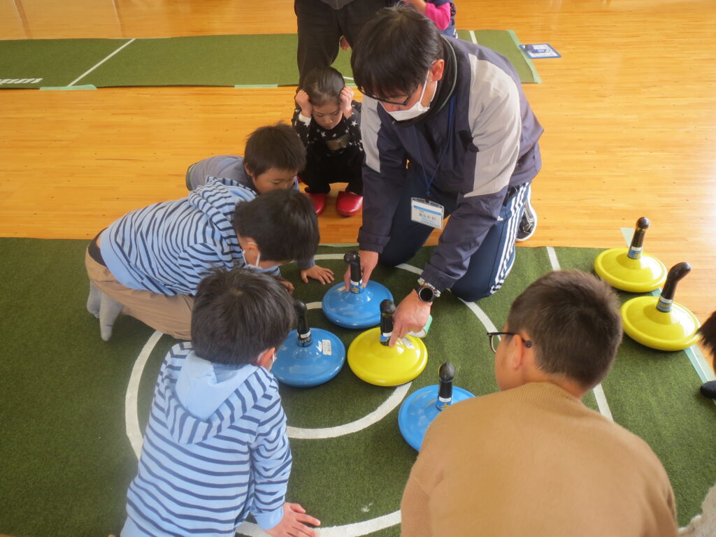 また、午後からの「世界のあそびコース」では、当事業団スポーツ健康課の荒川さんとともに、子どもたちがスウェーデン発祥のユニカールを体験。異国の文化に触れながら、元気いっぱいに交流を深めました。