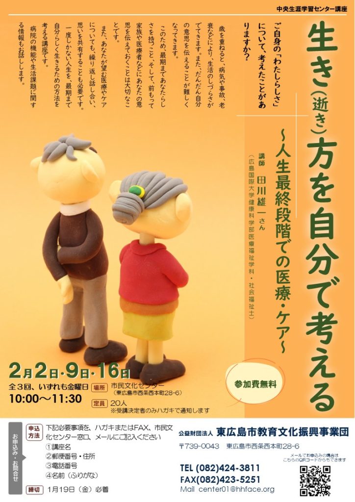 一度しかない人生を、最期まで自分らしく生きるための方法を考える講座です。