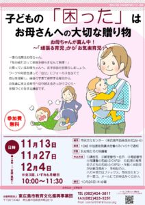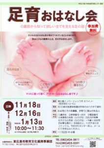 子どもたちの小さな足は、教えてくれていることがたくさんあります。足はこどもの健康の土台、足を守る話をします。 講師:小児理学療法士・認定足育アドバイザー®︎ 福田 裕衣さん日時:11月18日、12月16日、令和6年1月1 […]