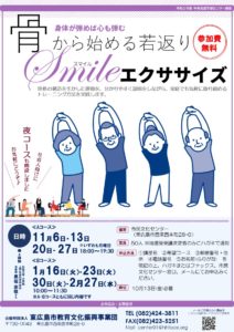 骨格の構造を生かした運動を、分かりやすく説明をしながら、家庭でも気軽に取り組めるトレーニング方法を実践します。 講師:広島大学大学院人間社会科学研究科 准教授 黒坂志穂さん日時:≪Aコース≫11月6日・13日・20日・ […]