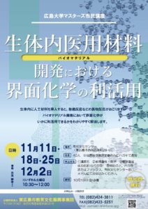 広島大学マスターズ市民講座~生体内医用材料(バイオマテリアル)開発における界面化学の利活用~