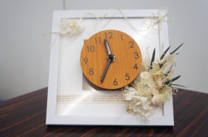 8月3日、市民文化センター研修室で「花の生活を楽しむ」を行いました。今回は「フラワークロック」とお菓子を包んで子どもにあげるときに楽しい「フラワーキャンディー」を作りました。