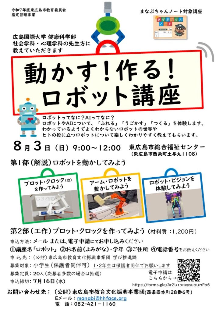 申込:Googleフォームまたはメールに次の内容を明記してお申し込みください(①講座名 ②お名前(ふりがな)・学年 ③郵便番号・ご住所 ④電話番号