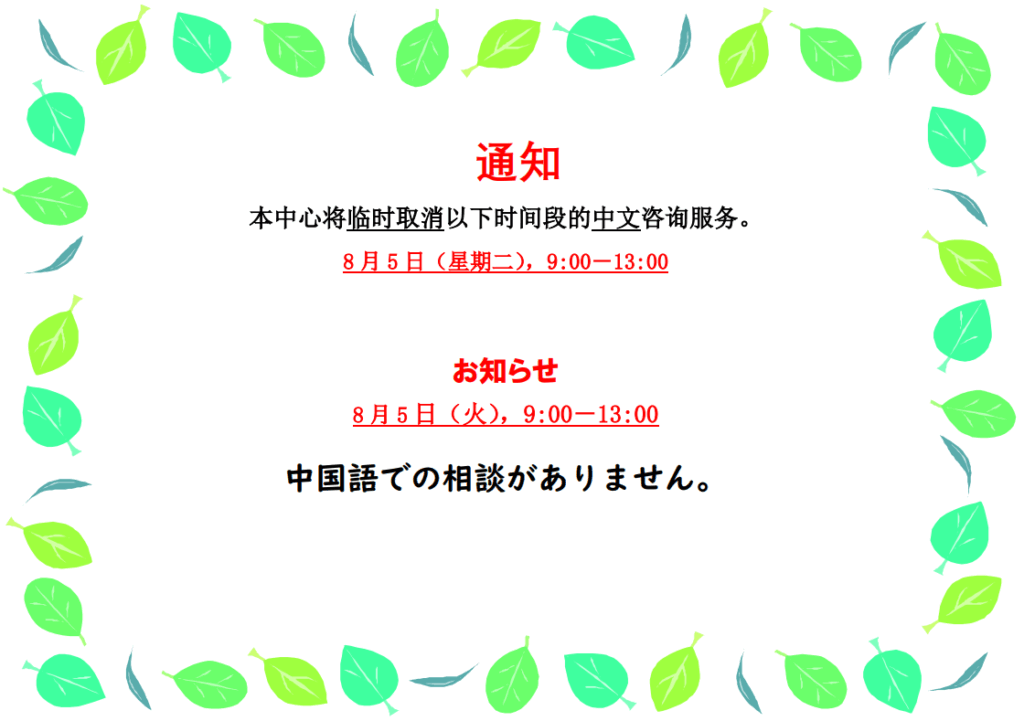【Citzen's Affairs Division: Out-of-hours opening in August】【8月市民科的非办公时间服务】【Serviços fora do horário comercial da Divisão de Assuntos do Cidadão em agosto】【Dịch vụ làm việc ngoài giờ hành chính của Ban thị dân trong tháng 8】【8月の市民課(しみんか)の時間外(じかんがい)サービス】
