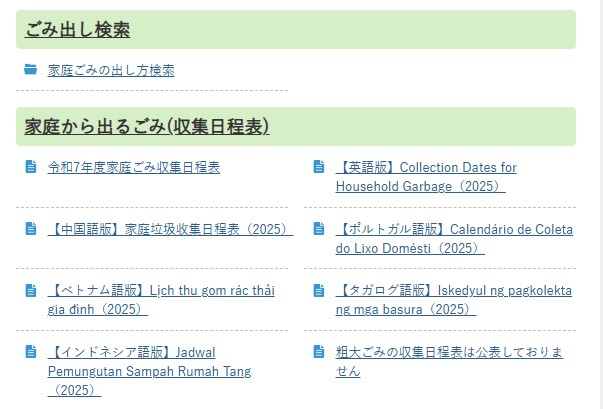 想确认具体安排的话,可以访问以下网站,用多种语言查看垃圾收集日程: