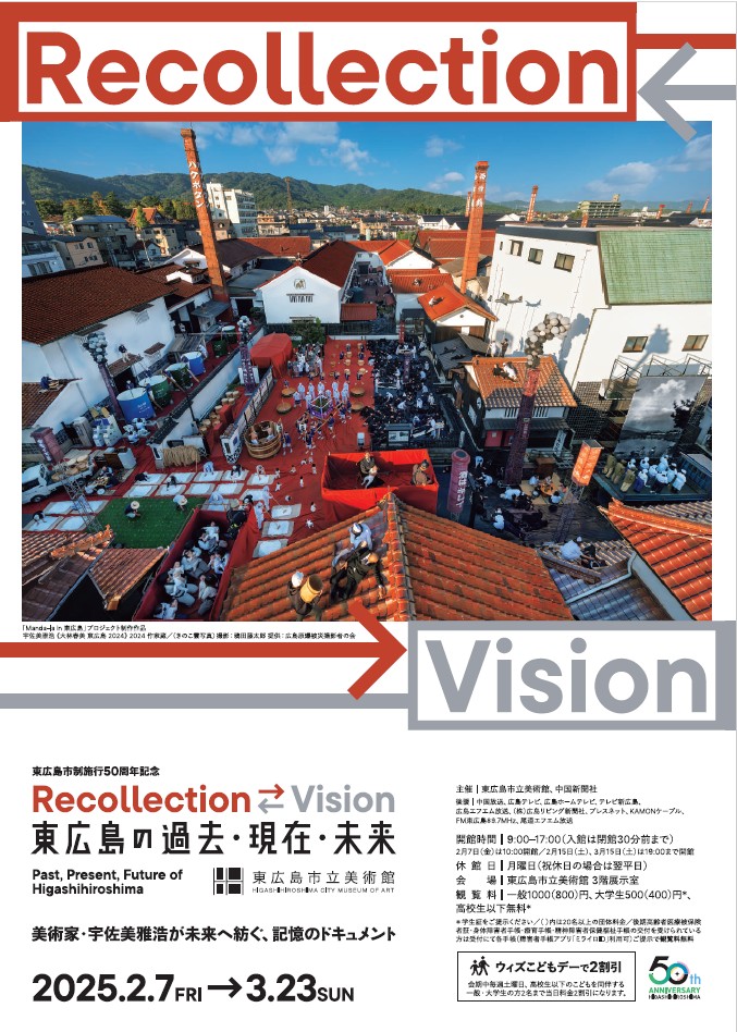 Está sendo realizada a exposição [50º Aniversário da Fundação de Higashihiroshima – Recollection ⇆ Vision: Passado, Presente e Futuro de Higashihiroshima]. Através da arte, você poderá sentir a conexão entre o passado e o presente de Higashihiroshima. A exposição inclui obras criadas por participantes do mundo todo.