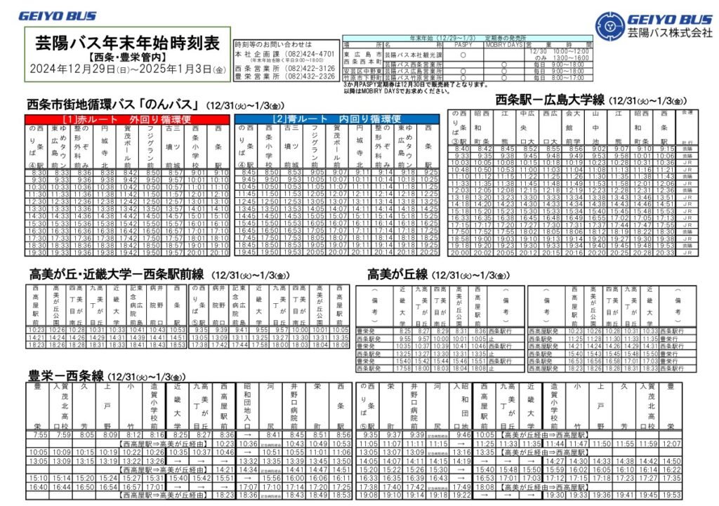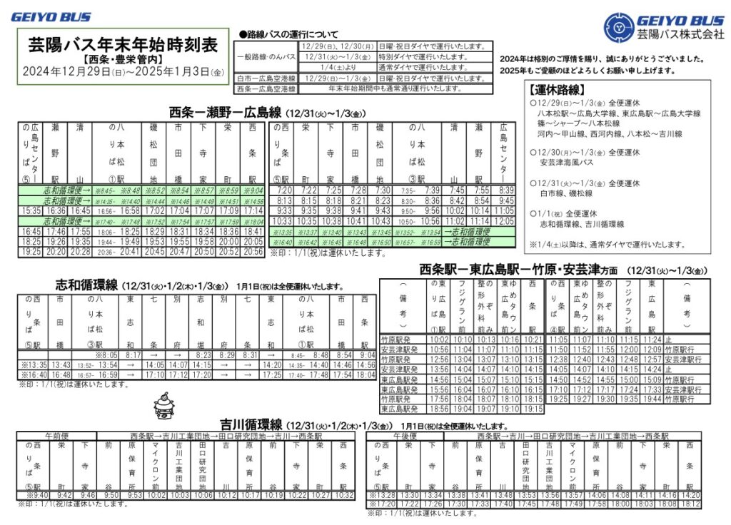 The bus schedule will change drastically from December 29th (Sunday) to January 3rd (Friday). Please be careful when riding the bus.