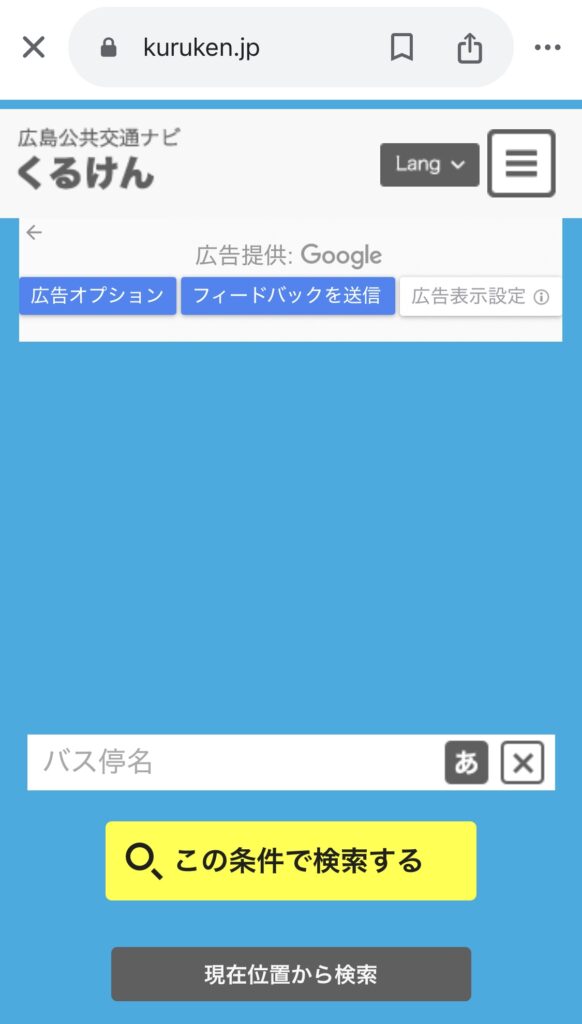 「くるけん」というサイトでは、 どこに行(い)くバスが いつ来(く)るか 調(しら)べることができます。右上(みぎうえ)のLANGから、日本語(にほんご)、英語(えいご)、中国語(ちゅうごくご)、ハングル が 選(えら)べます。ぜひ バスに乗(の)る前(まえ)に、調(しら)べてください。