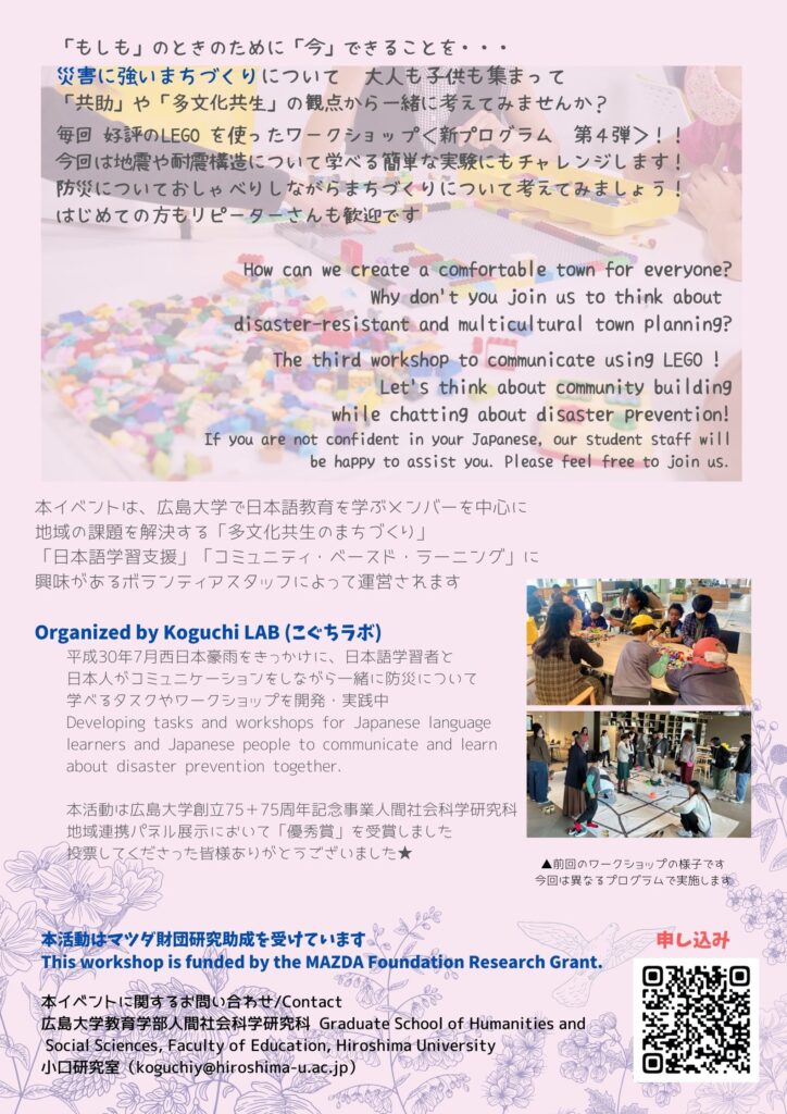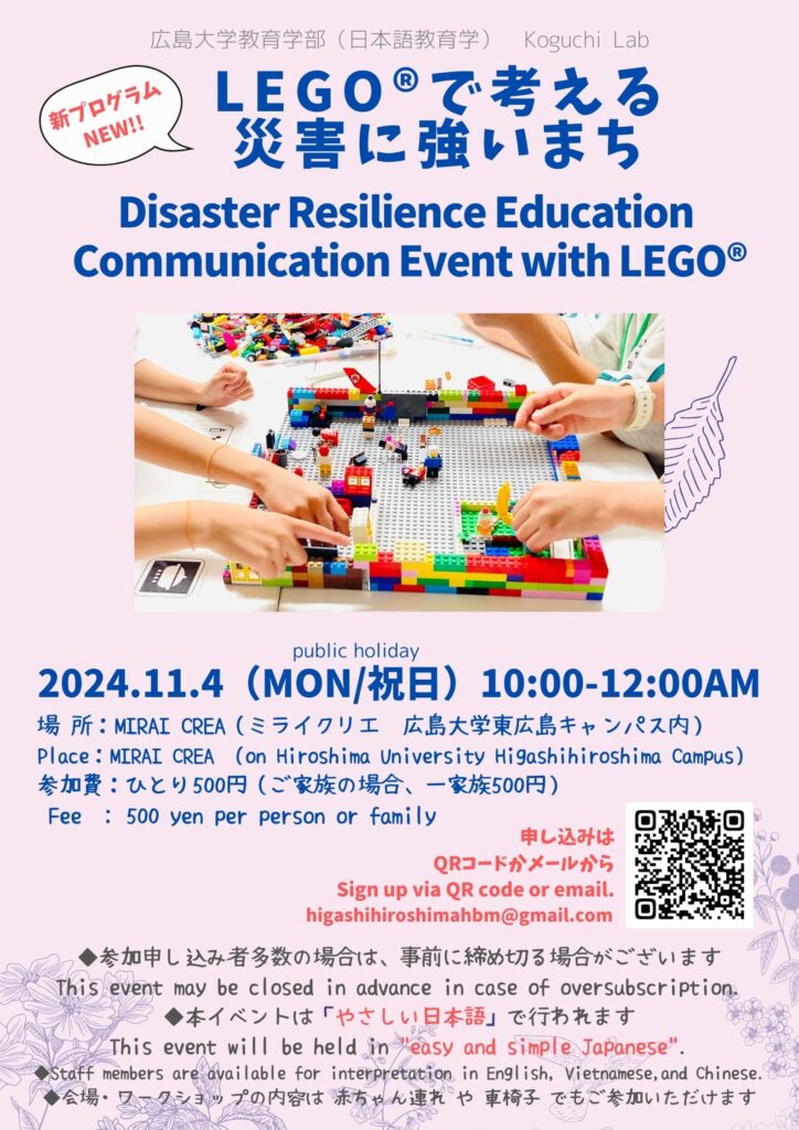 There will be a “Disaster Resilience Education Communication Event with LEGO”. Everyone is welcome to participate.