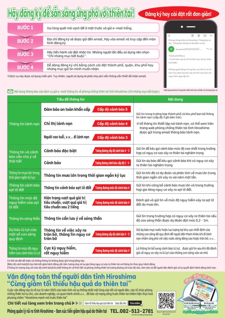 【E-mail sobre Prevenção de Desastres de Hiroshima】【Dịch vụ gửi thư thông báo thông tin phòng chống thiên tai tỉnh Hiroshima】