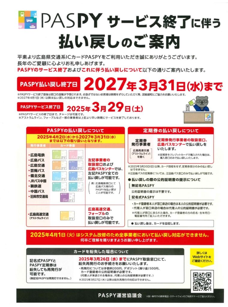 PASPYは、3月29日(土:どようび)で終(お)わります。詳(くわ)しいことは、PASPYのサイトを見(み)てください。