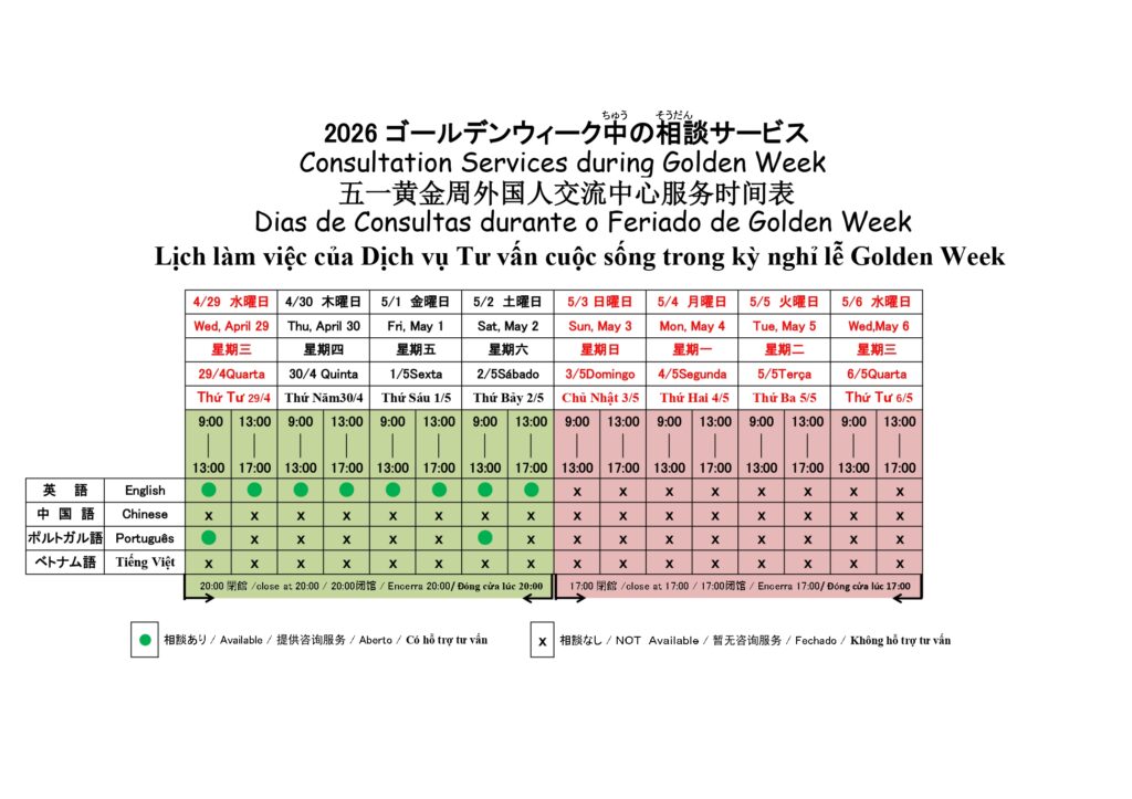 【Golden Week Holiday Schedule】【黄金周(GW)日程】【Lịch làm việc trong Tuần lễ Vàng】【GWスケジュール】