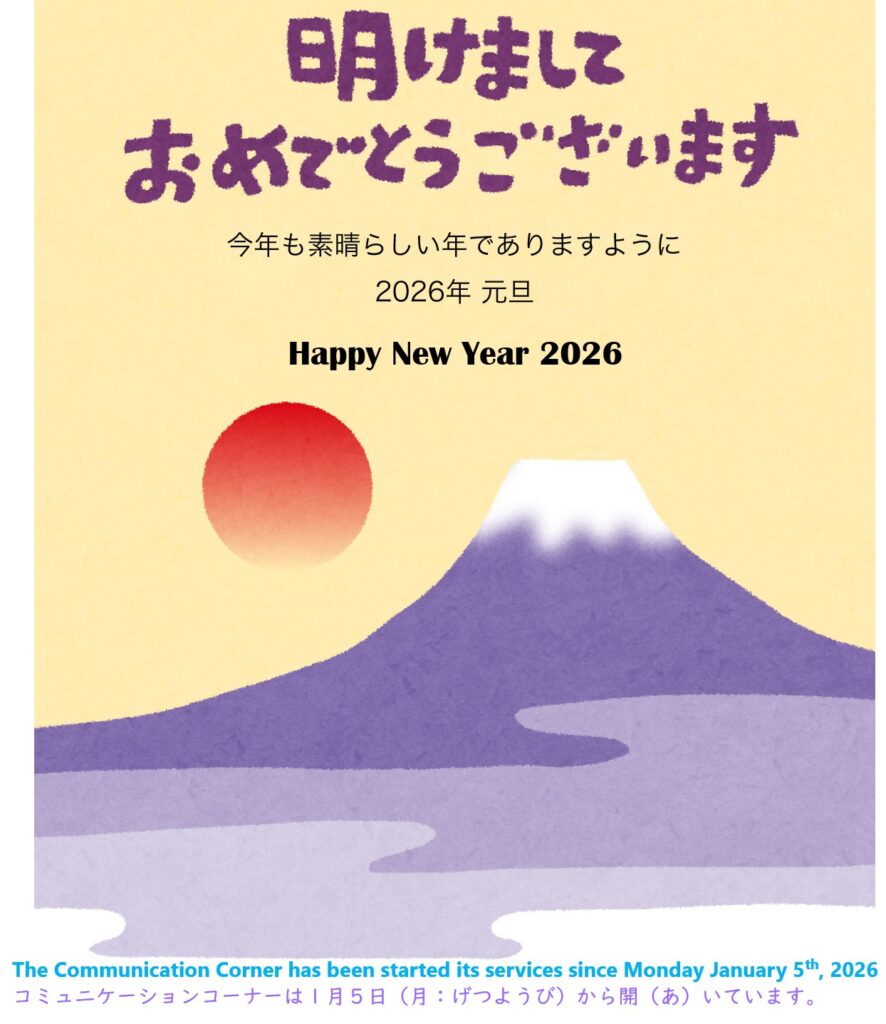 コミュニケーションコーナーは1月5日(月:げつようび)から開(あ)いています。みなさん、来(き)てください。