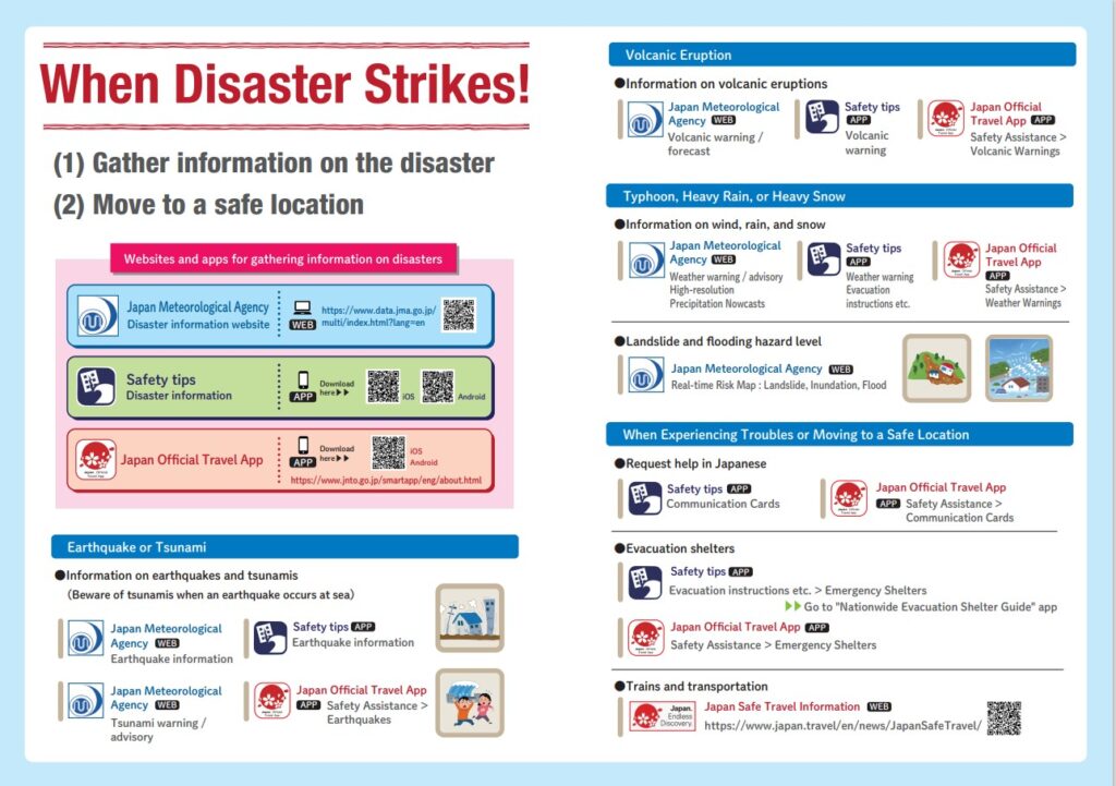 The Japanese government has produced a leaflet in 15 languages to provide useful information on multilingual apps and websites in case of natural disaster. Why don't you take a look to prepare for disasters?