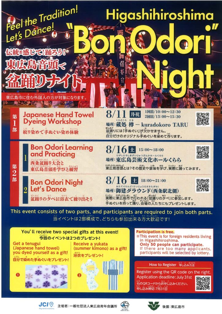 Foreign nationals living in Higashihiroshima can apply for this event.