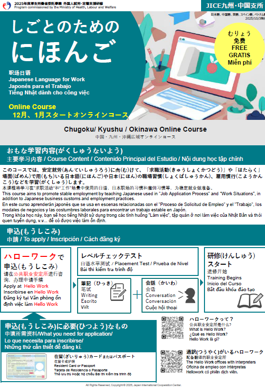 【Japanese Language for Work Online Course】【为工作而设的日语在线课程】【Curso online de japonês para o trabalho】【Khóa tiếng Nhật online phục vụ công việc】【しごとのための にほんご オンラインコース】