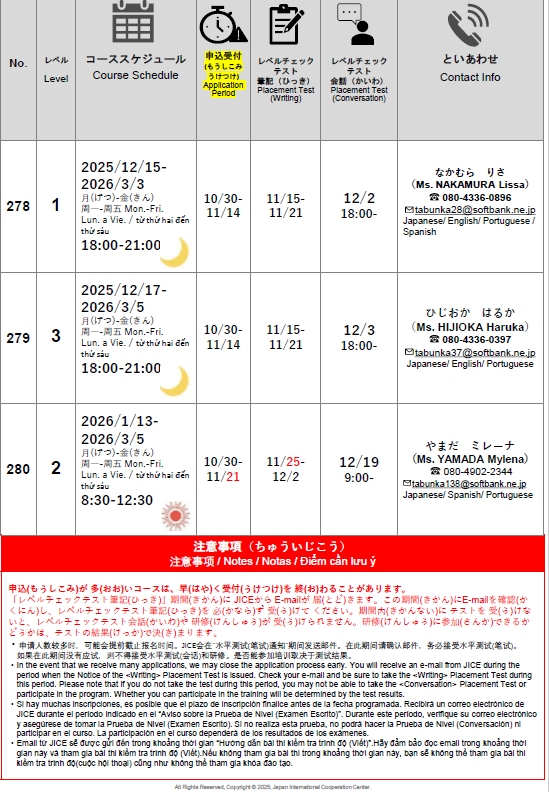 Đã bắt đầu tiếp nhận đăng ký Khóa học online "Tiếng Nhật phục vụ công việc" mùa đông của JICE. Lịch trình lớp học có sự khác nhau giữa các trình độ. Về thông tin chi tiết, xin vui lòng tham khảo đường link dưới.
