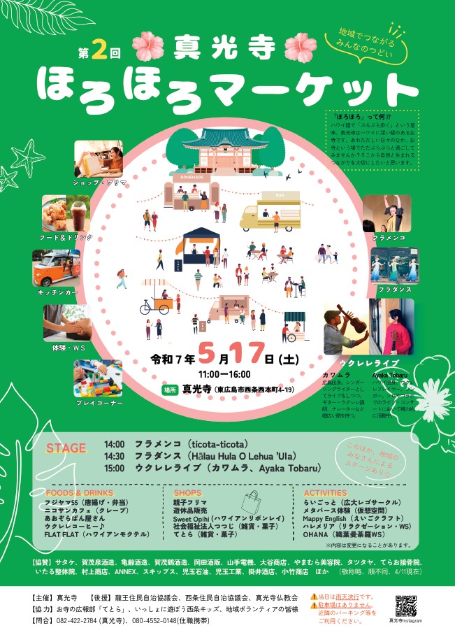 5月17日(周六)11:00~16:00,西条西本町4-19的真光寺将举办集市活动。