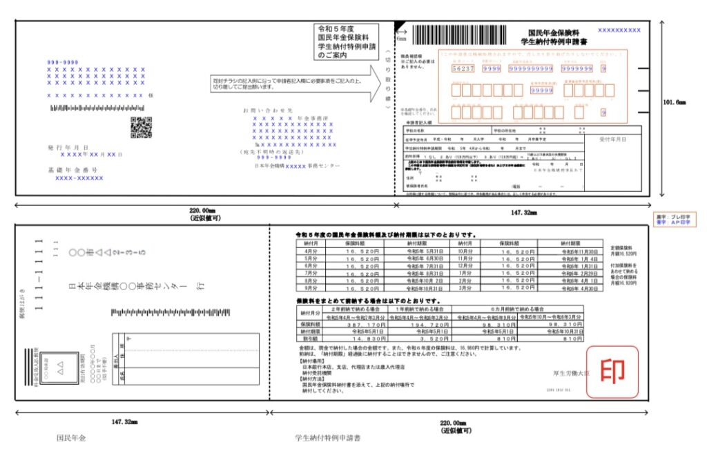 Với những người đã đăng ký hoãn đóng Bảo hiểm hưu trí quốc dân, chế độ đặc biệt dành cho học sinh, vào mỗi tháng 4 hàng năm sẽ có bưu thiếp gia hạn được chuyển đến. Phong bì này có màu trắng, bên ngoài viết "日本年金機構(こくみんねんきんきこう)/ Cơ quan Bảo hiểm hưu trí Nhật Bản". Bên trong sẽ có bưu thiếp để đăng ký gia hạn. Hãy điền và gửi ngay lại cho Cơ quan Bảo hiểm hưu trí Nhật Bản.