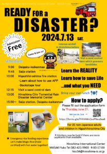 There will be a Disaster Prevention (BOSAI) Festa on July 13 (Sat.) from 9:30 to 15:30. This is a bus tour. Fo […]
