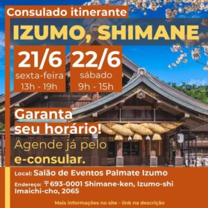 Dias 21 de junho (sexta) e 22 de junho (sábado), será realizado o consulado itinerante na cidade Izumo, provín […]