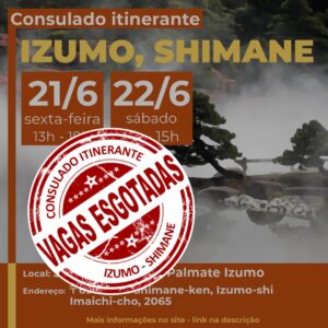 Dias 21 de junho (sexta) e 22 de junho (sábado), será realizado o consulado itinerante na cidade Izumo, provín […]