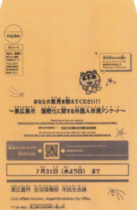 Higashihiroshima City Hall sent out a survey to 1,000 foreign residents living in Higashihiroshima City. Pleas […]