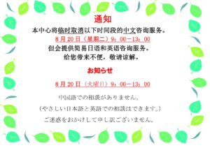 On August 13th, 14th, 15th, there will be no foreign- language consultation services available. However, you c […]