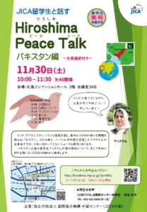 "Hiroshima Peace Talk Pakistan" will be held on November 30th (Saturday) from 10:00 to 11:30 on the 3rd floor […]