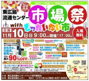 On 10 Nov (Sun), from 9:00-17:00, there will be a Mottainai Market at the Higashihiroshima Ryutsu Centre, Hach […]