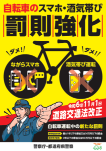 Starting in November, bicycle traffic rules have become very strict.① Riding a bicycle while using a smartphon […]