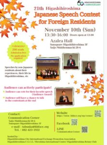 On 10 November (Sunday), from 13:30 to 16:00, a Japanese speech contest will be held at Azalea Hall on the 3rd […]