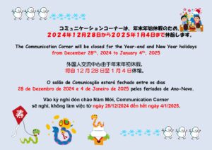 【Closure for Year-end and New Year holidays at the Communication Corner】【外国人交流中心的年末年初休息通知】【Salão de Comunicação estará fechado durante feriados de final e início de ano】【Lịch nghỉ Tết Dương lịch của Communication Corner】【コミュニケーションコーナーの年末年始(ねんまつねんし)休(やす)み】