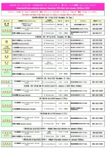 【Hospitals/Clinics available between December 29th (Sun.) and January 5th(Sun.) 2025】【2025年12月29日(星期日)至2025年1月5日(星期日)期间开门的医院】【Lista de hospitais abertos entre os dias 29 de dezembro de 2024 (domingo) e 5 de janeiro de 2025 (domingo)】【Danh sách bệnh viện mở cửa làm việc từ ngày 29/12/2024 (Chủ Nhật) đến ngày 5/1/2025 (Chủ Nhật)】【12月29日(日:にちようび)~2025年1月5日(日:にちようび)に 開(あ)いている病院(びょういん)のリスト】
